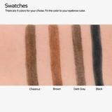Comes in three shades: Chestnut (dark brown, reddish under tones) Brown (universal taupe shade, looks great on light brown and dark brown hair) and Dark Grey (Black, charcoal shade)